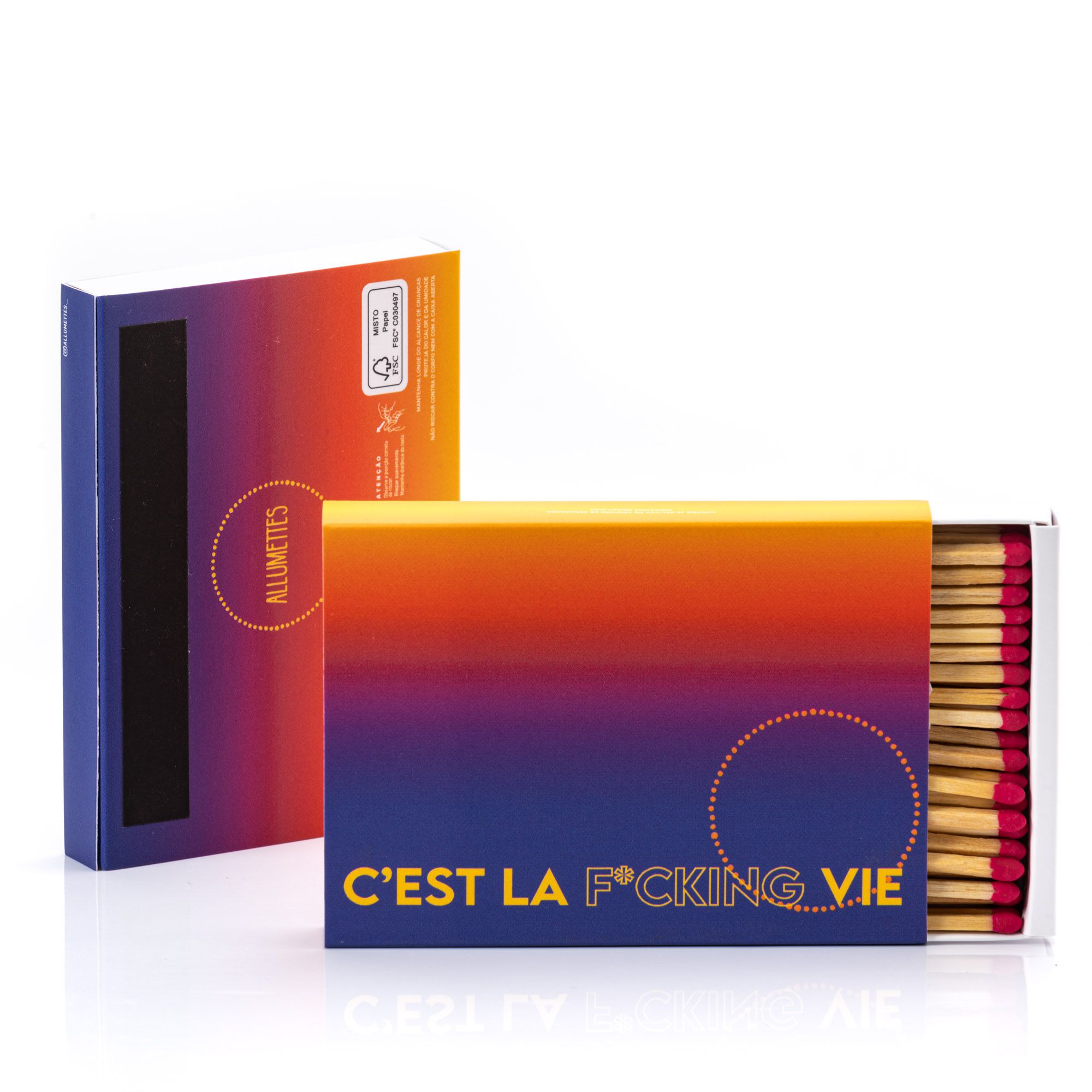 Todas as caixas de fósforo de mesa Allumettes possuem a certificação FSC*
