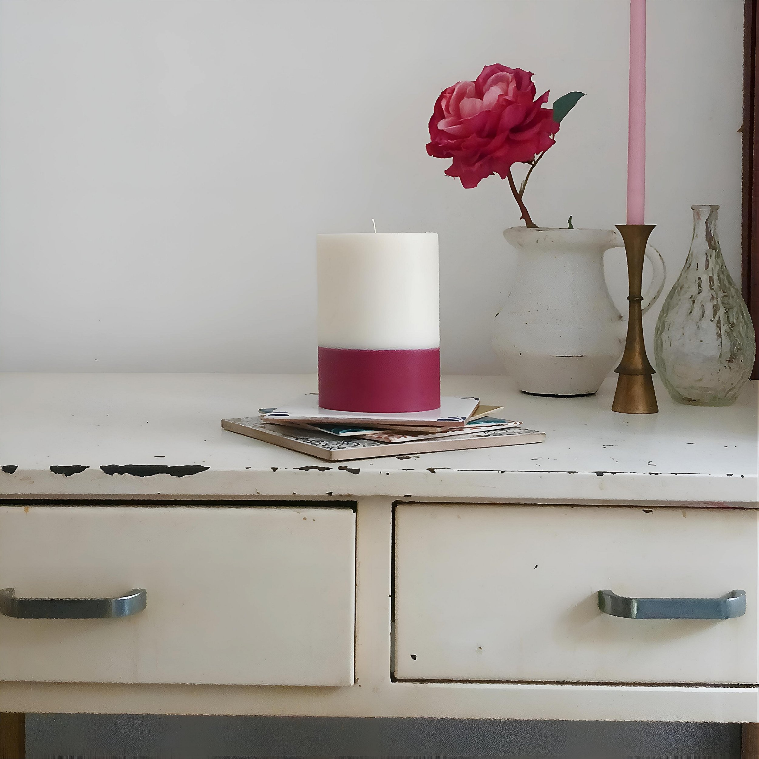 Velas cilíndricas feitas à mão em dois tempos de secagem e camadas